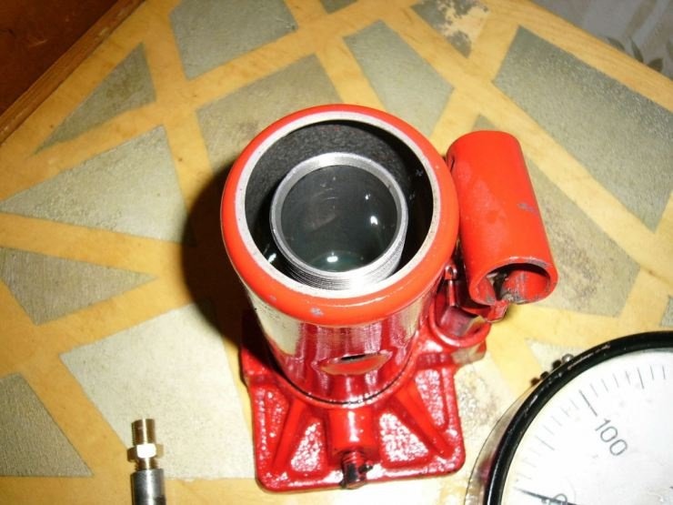 Устройство и ремонт гидравлического домкрата бутылочного типаДля того чтобы произвести обслуживание бутылочного гидравлического домкрата его нужно разобрать. Беспокоится о том, что вас забрызгает маслом от высокого давления не стоит.