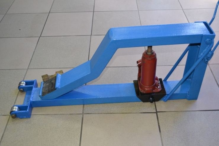 Название "подкатной домкрат" было дано домкрату из-за его внешнего сходства с тележкой. Несмотря на простоту конструкции, он используется для подъема грузовиков.